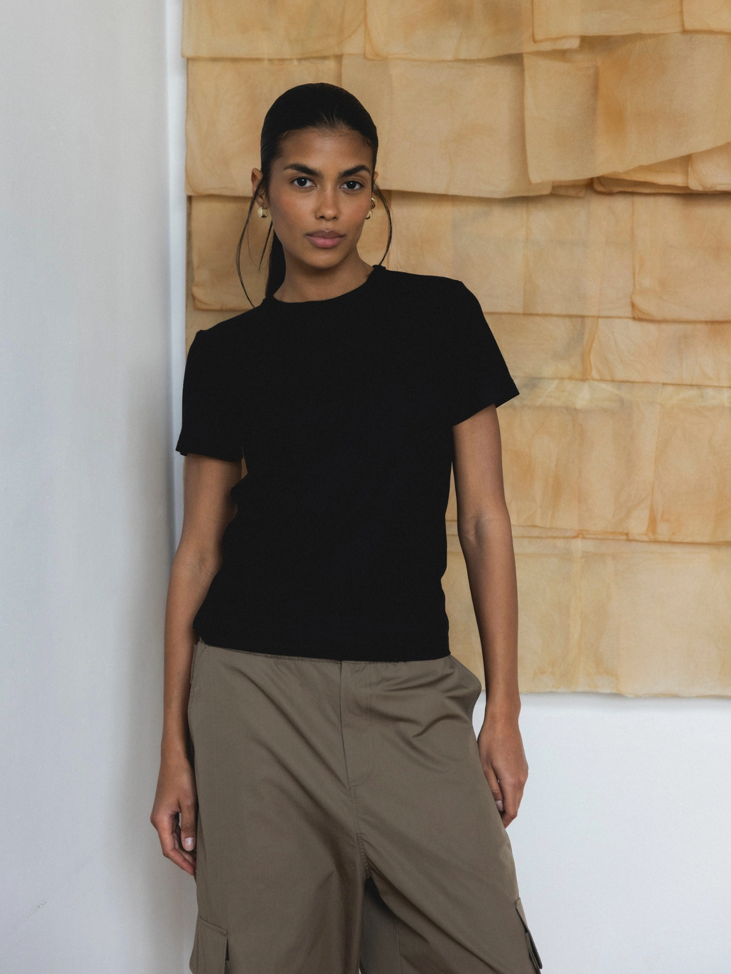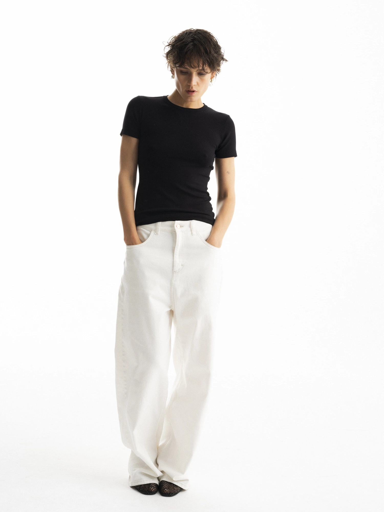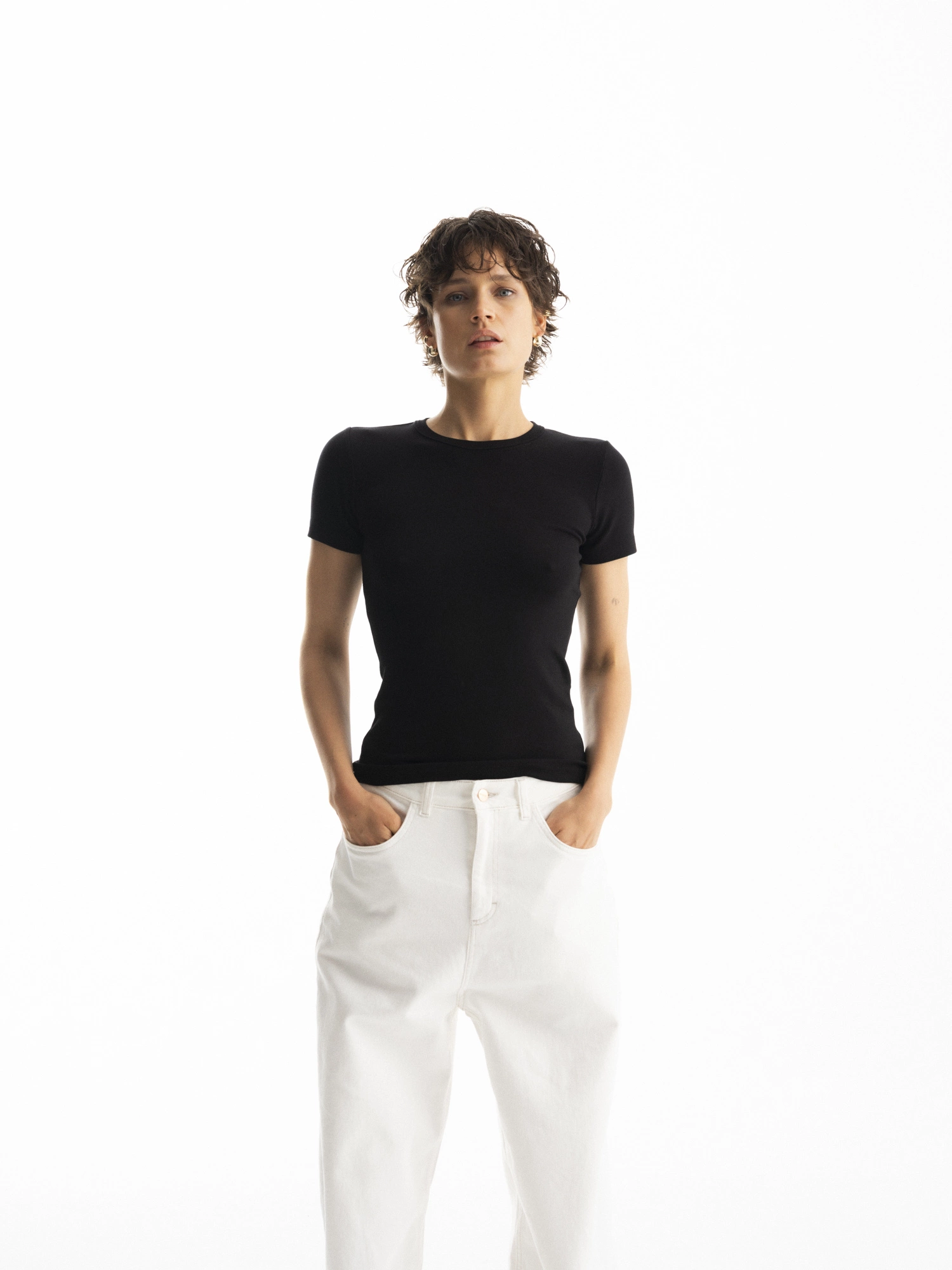 Fitted T-shirt with a ribbed structure. Made of extremely soft, dense, and skin-friendly viscose. It is elastic, comfortable, and will adjust to you. This timeless classic fits perfectly into any wardrobe and serves as a base for creating many stylings.