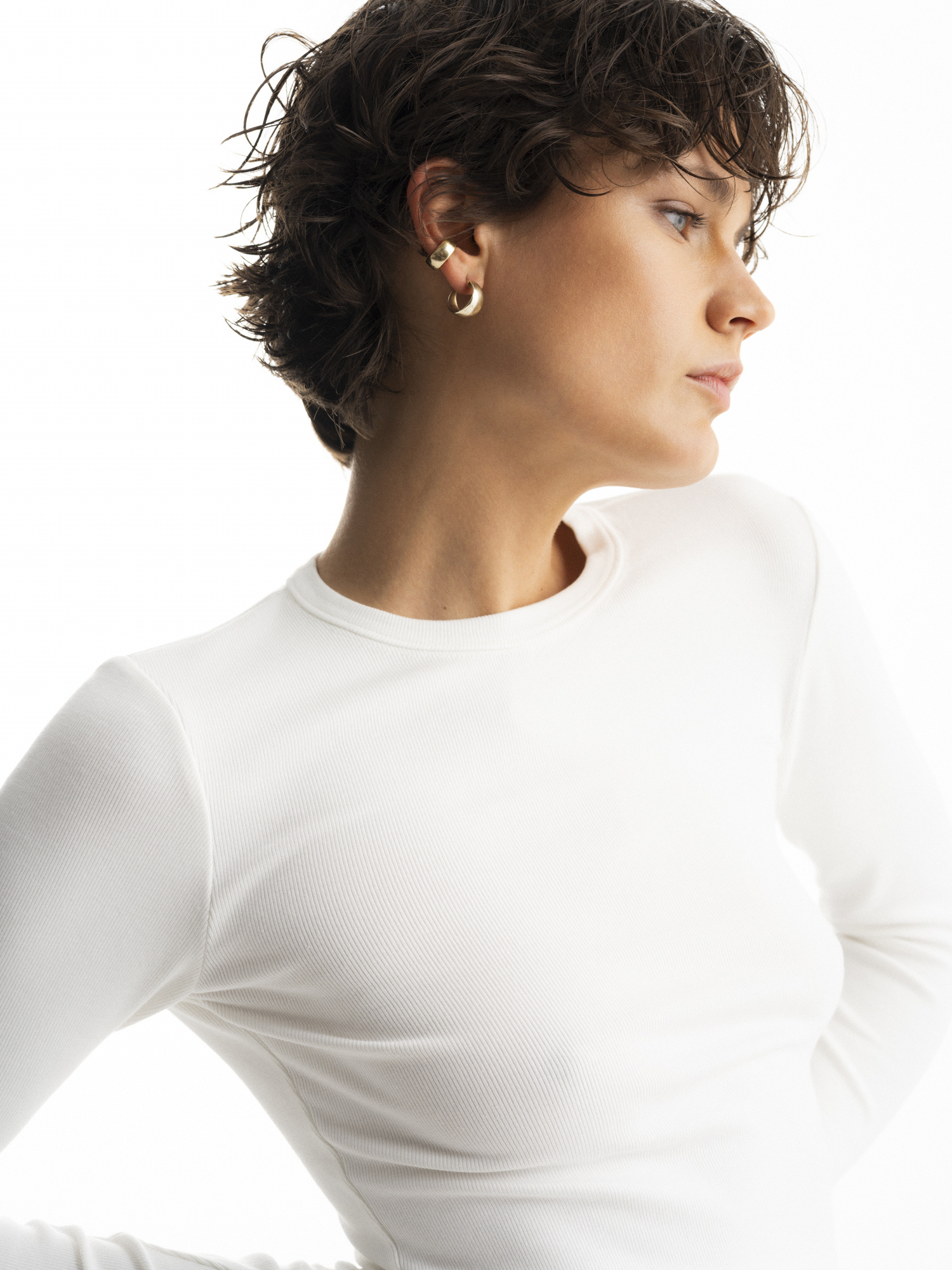 Fitted long sleeve with a ribbed structure. Made of extremely soft, dense, and skin-friendly viscose. It is elastic, comfortable, and will adjust to you. This timeless classic fits perfectly into any wardrobe and serves as a base for creating many reliable outfits.