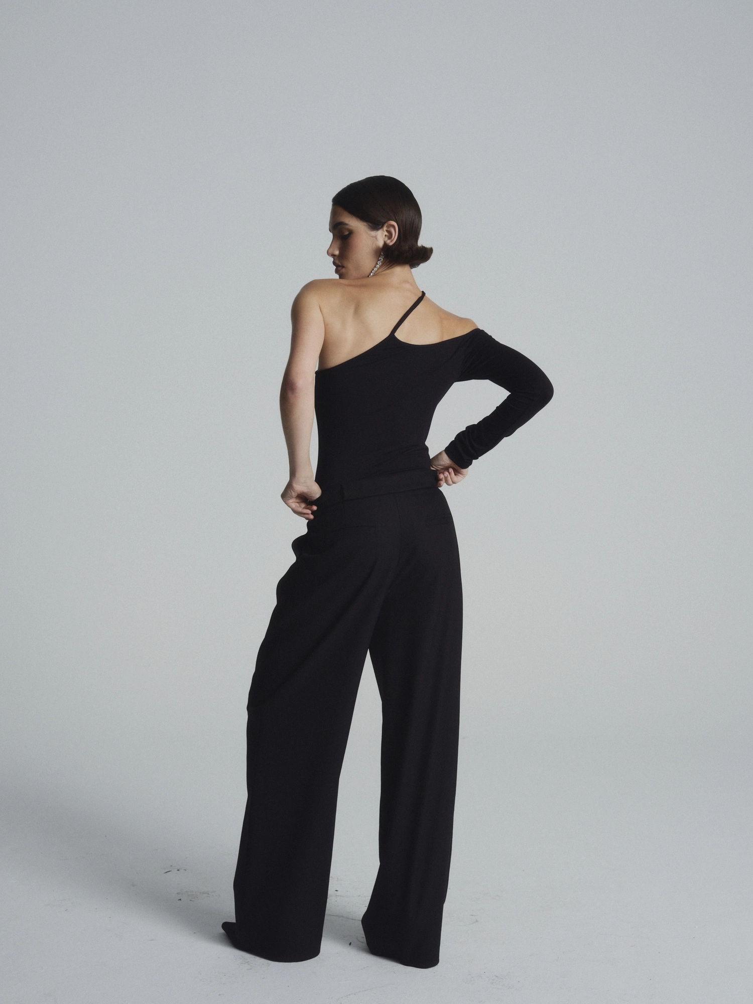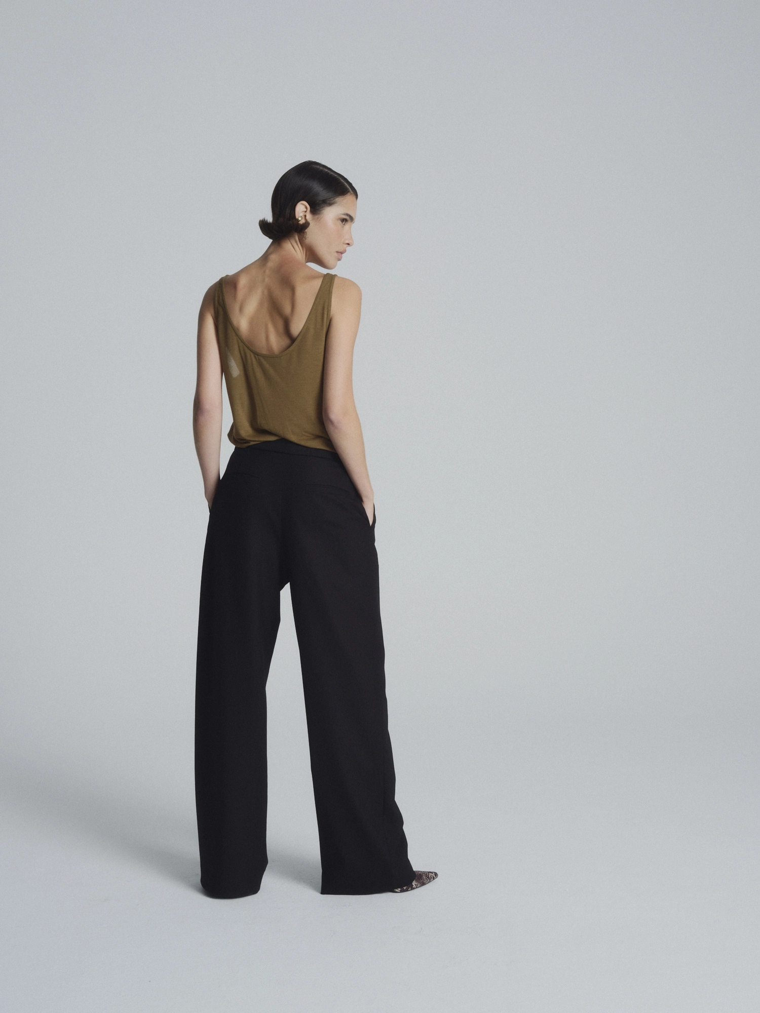 Relaxed wool trousers inspired by classic menswear tailoring. Featuring a low-rise waist, deep front darts, and straight, elongated legs that drape effortlessly over the silhouette. Belt loops and side pockets combine functionality with a refined, contemporary design.