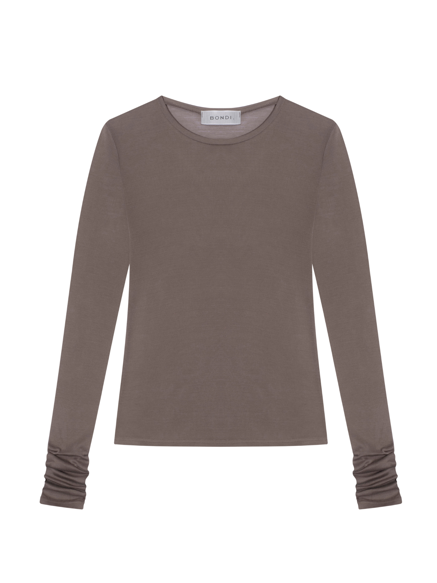 A fitted long-sleeve shirt made from a 100% light silk. Its minimalist design gives it a modern feel, while the slightly transparent fabric adds a bold yet subtle touch. Perfect for wearing on its own with smooth lingerie or as a base for layered outfits – under an oversized blazer, a leather jacket, or a casual shirt.