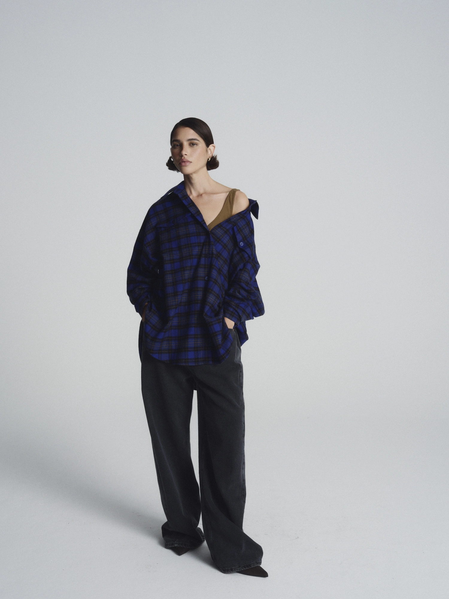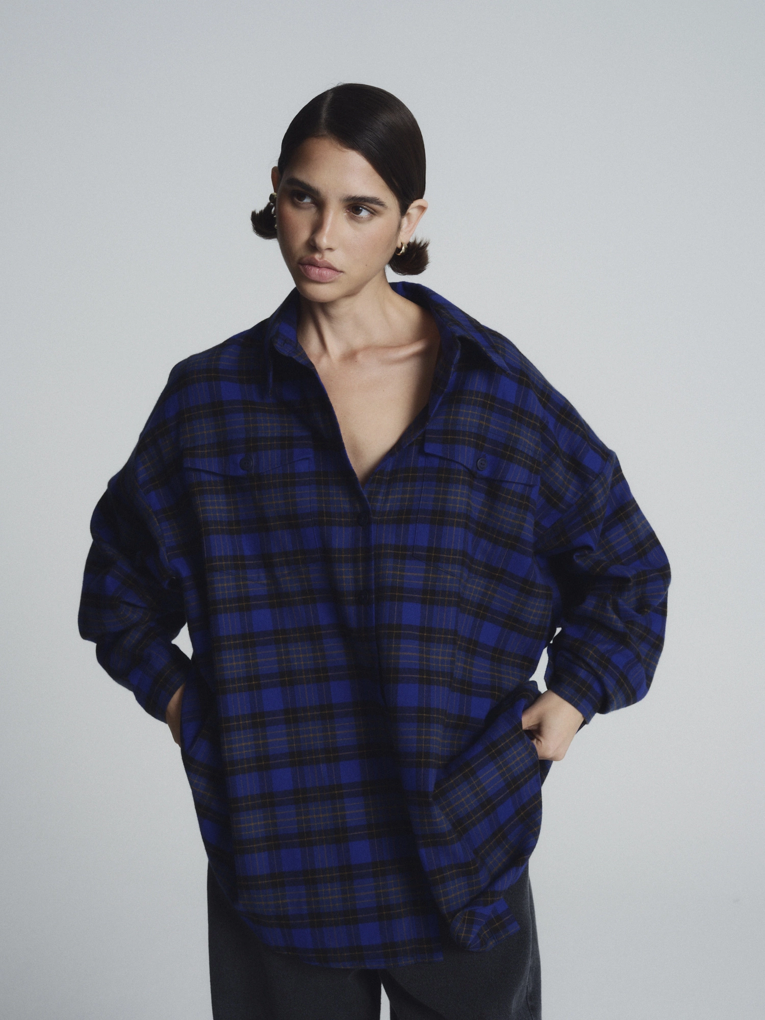 The maxi shirt is made from 100% soft cotton, blending rock-inspired nonchalance with comfort and ease - an essential companion for any outfit. Long and relaxed, it features decorative chest pockets and wide cuffs at the wrists. This shirt is all about character, and its unique print paired with leather pants or jeans will unleash your inner rebel - one who values quality, uniqueness, and, above all, style.