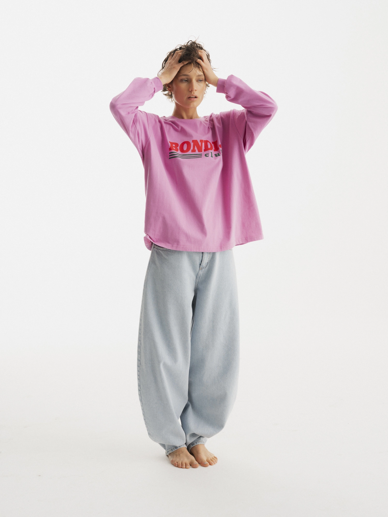 Longsleeve oversize uszyty z miękkiej i przyjemnej w dotyku bawełny. Długi, luźny fason z szerokimi rękawami zakończonymi wąskim ściągaczem zapewnia swobodę ruchów i komfort noszenia. Na przodzie znajduje się grafika z logo, wykonana metodą sitodruku wodnego, dzięki której nadruk zyskuje charakter vintage oraz pozostaje miękki w dotyku. To propozycja, którą z powodzeniem możesz zestawić z luźnymi jeansami czy szortami lub narzucić na bikini i lecieć na plażę.