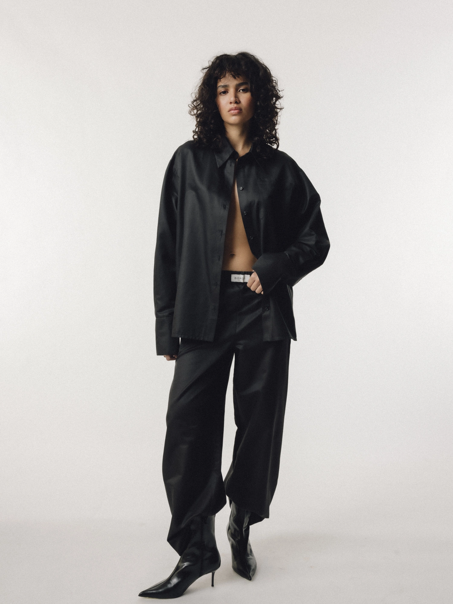 Proste spodnie wykonana z miękkiej, grubszej bawełny w pionowe paski - materiał wyróżnia się subtelnym połyskiem, dzięki któremu całość zyskuje na elegancji. Mają wygodną gumę w pasie i dwie poręczne kieszenie po bokach. To uniwersalny element garderoby, który sprawdzi się w wielu stylizacjach. Idealnie komponują się z dopasowanym longsleevem, oversizowym swetrem lub bluzą, a przede wszystkim z dedykowaną KOSZULĄ. Ten set to odpowiedź zarówno na oficjalne wyjścia biznesowe, jak i niezobowiązujące spotkania casualowe. Noś ze szpilkami, sneakersami lub botkami, tworząc zestaw odpowiedni do swojego stylu i okazji.