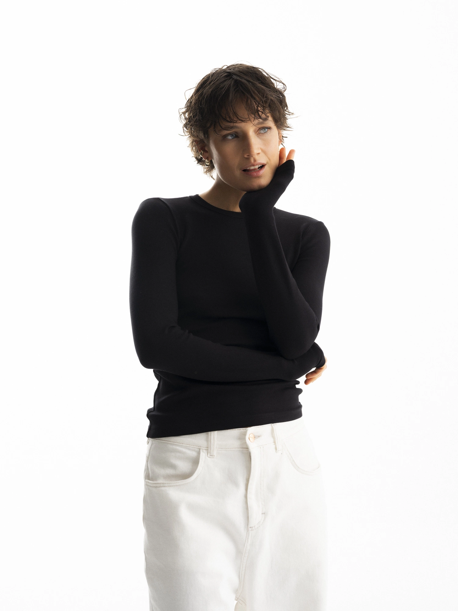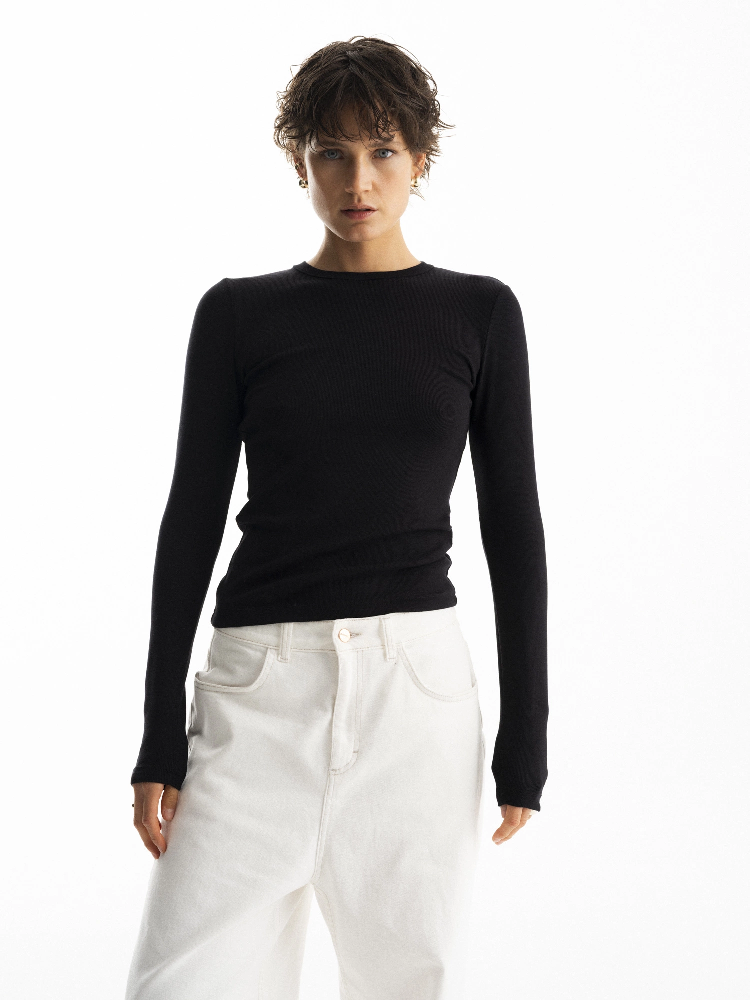 Dopasowany longsleeve o prążkowanej strukturze. Wykonany z niezwykle miękkiej, mięsistej i delikatnej dla skóry wiskozy. Jest elastyczny, wygodny i dostosuje się do Ciebie. To ponadczasowy klasyk, który idealnie wpisuje się w każdą garderobę i stanowi bazę do stworzenia wielu niezawodnych stylizacji.