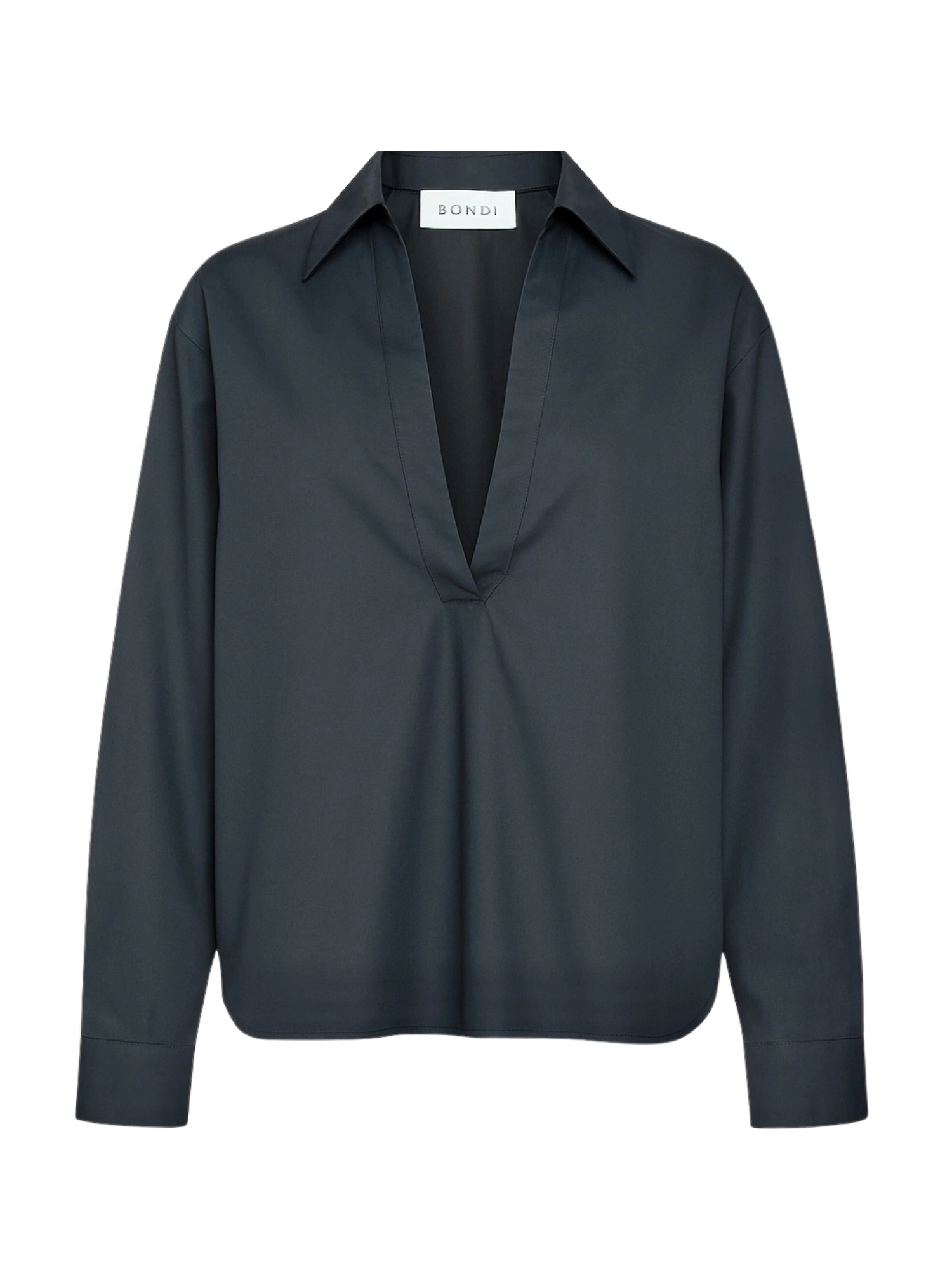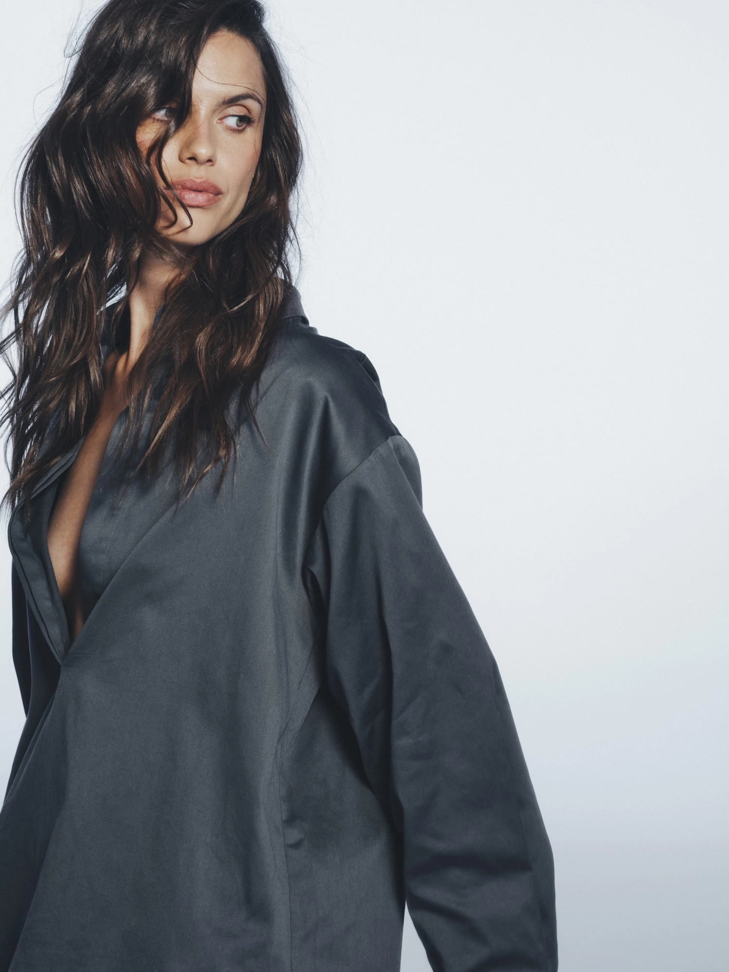 Mikah to nowa definicja klasyki. Prosta, minimalistyczna, wykonana z miękkiej bawełny. Łączy w sobie elementy męskiego kroju ze zmysłowym kobiecym akcentem. Sprawia wrażenie zapinanej na guziki, jednak posiada charakterystyczny dekolt w serek, który nadaje całej formie nowoczesnej lekkości. To wyjątkowa propozycja dla kobiet, które cenią sobie klasykę, ale w nowoczesnym, nieoczywistym wydaniu. Idealna do stylizacji casualowych, jak i eleganckich zestawów typu office.