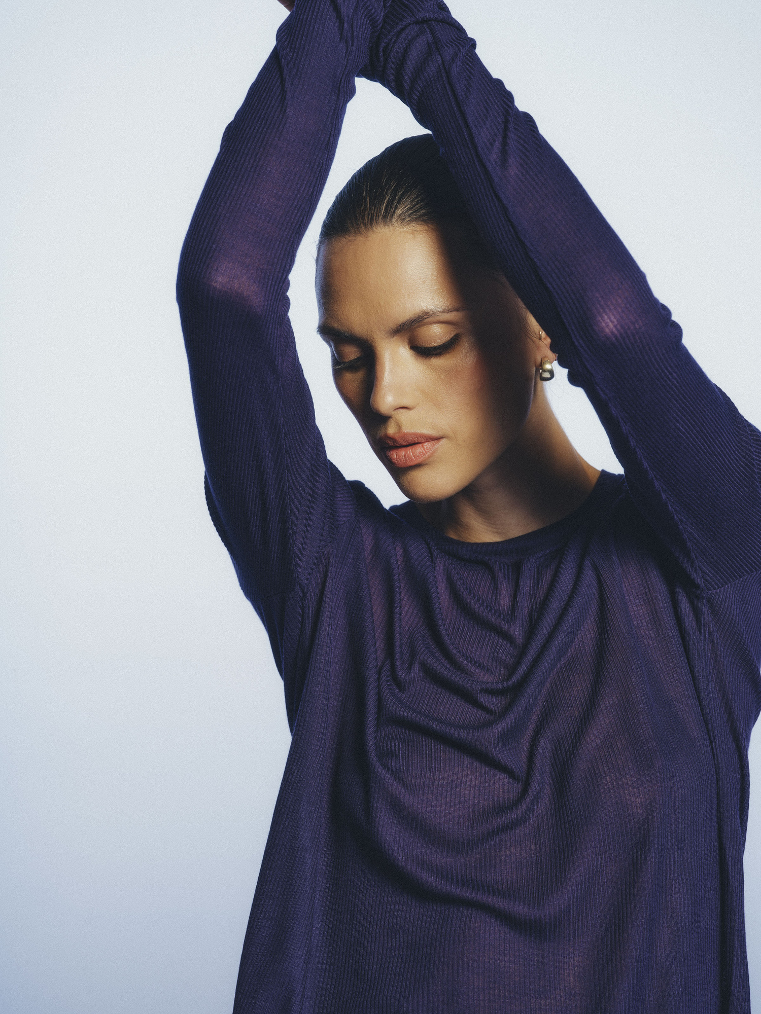 Longsleeve wykonany z miękkiej mieszanki wiskozy i jedwabiu o delikatnie transparentnej i prążkowanej strukturze, która nadaje całości lekkości i subtelnego charakteru. Luźny, swobodny fason z długimi rękawami zapewnia komfort noszenia i pełną swobodę ruchów. Idealny jako baza minimalistycznych stylizacji.