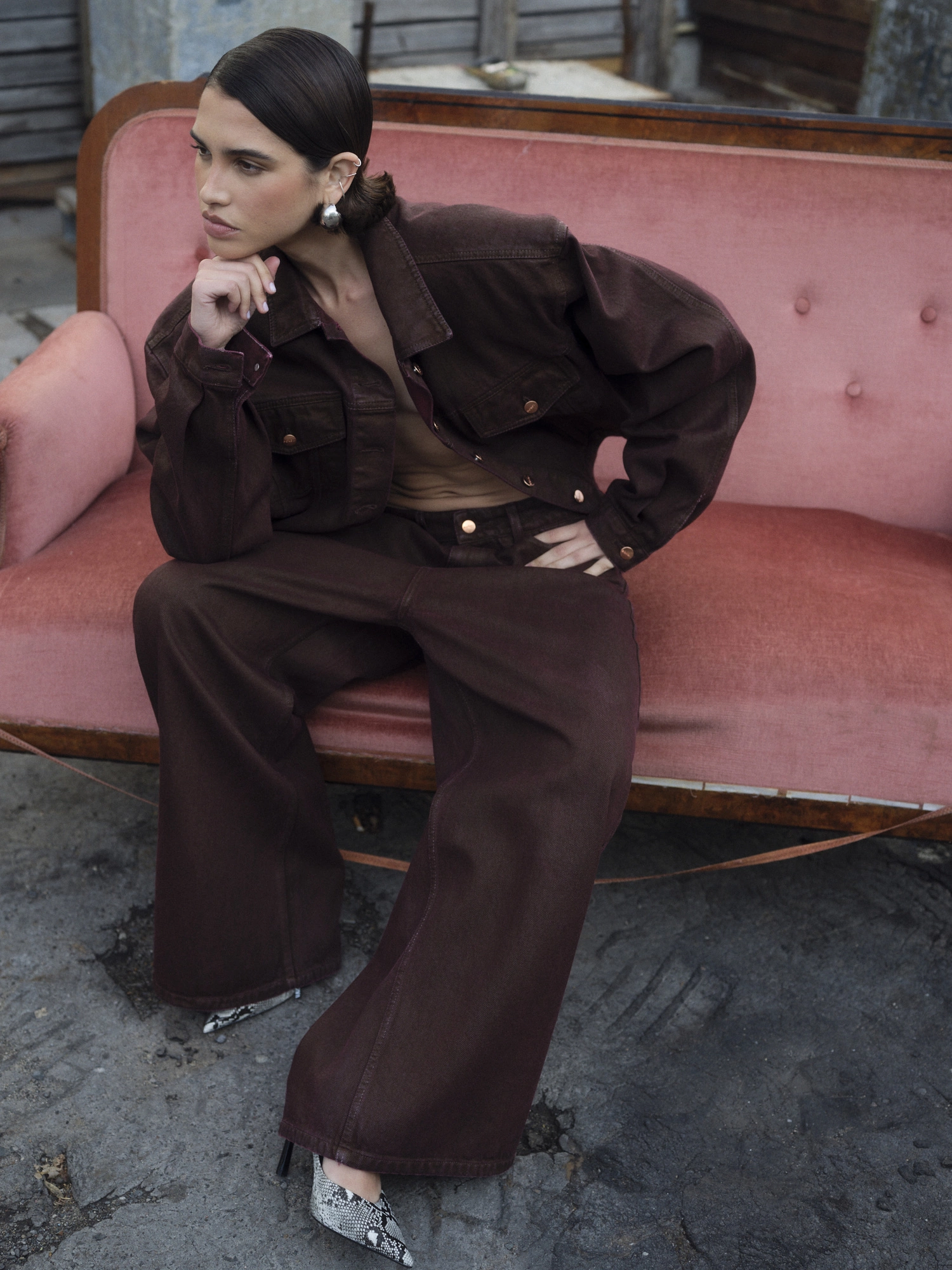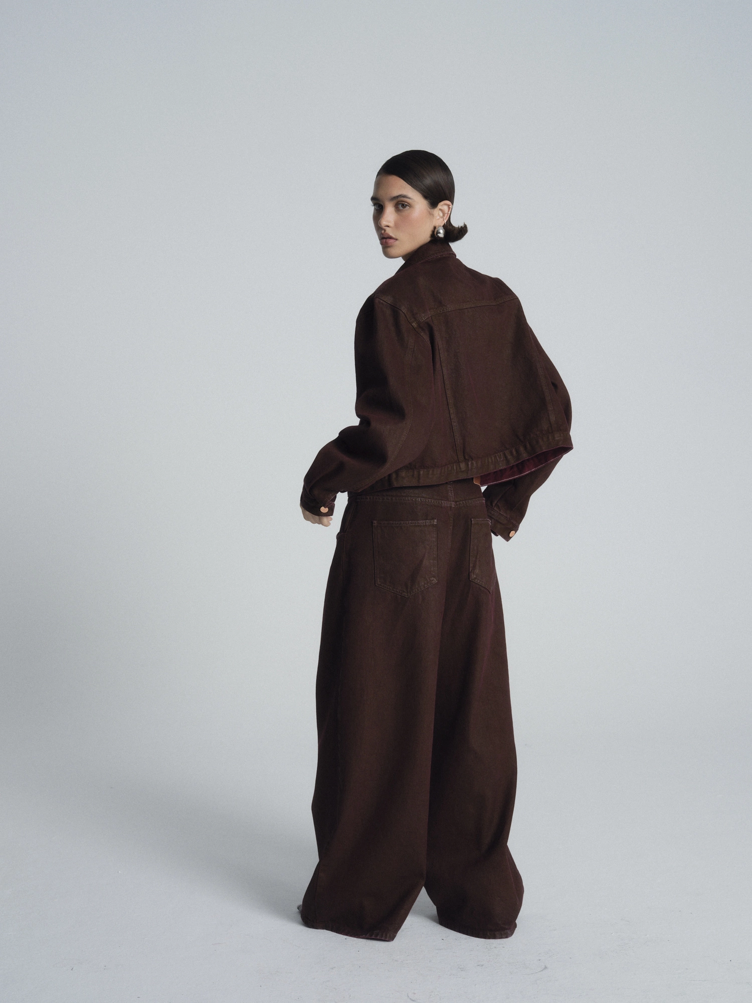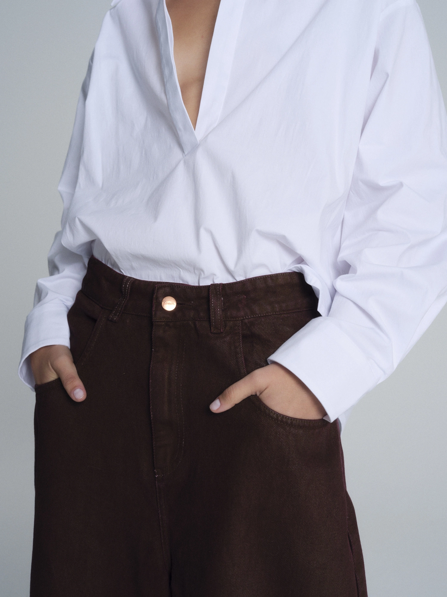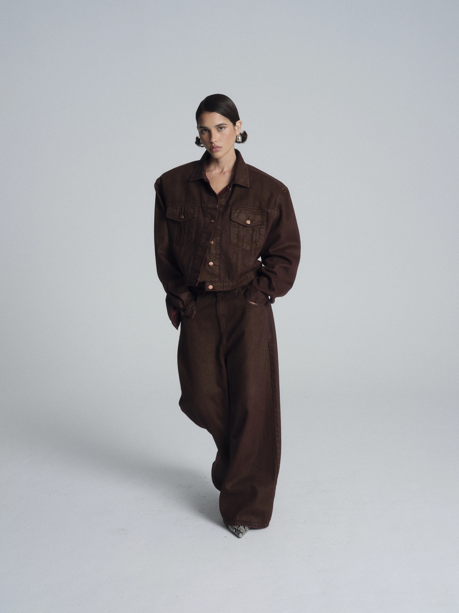Woskowana powierzchnia dodaje spodniom unikatowego wyrazu i subtelnie usztywnia materiał, dzięki czemu denim świetnie się układa i dobrze zachowuje swoją formę. To model, który sprawdzi się zarówno w codziennych, jak i bardziej dopracowanych stylizacjach. Zestaw je z prostym topem, koszulą lub dopasowaną kurtką w tym samym odcieniu, tworząc nowoczesne, spójne kompozycje na różne okazje.